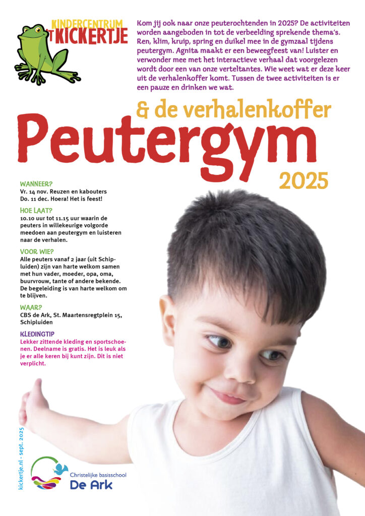 De combinatie van peutersport met voorlezen krijgen inmiddels een legendarische vorm. Iedere maand wordt er gesport door de peuters bij CBS de Ark in Schipluiden. De afwisseling met heerlijk rustig een boekje voorlezen is een succes. Kom gezellig langs.